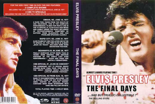 Includes: Omaha,NE June 19th 1977, concert Rapid City,SD June 21st 1977, concert Indianapolis,IN June 26th, concert CBS TV Special uncut version CBS TV Special #2 - Rare documentaries from the day Elvis passed away incl. the TV Special and many rare interviews with fans and fellow artists.Hosted by Geraldo Rivera.