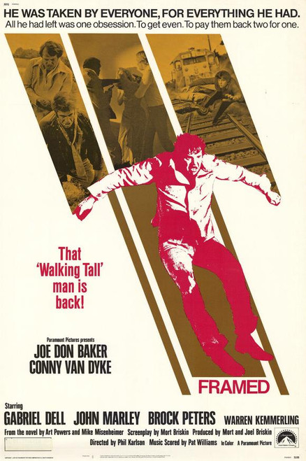 From the makers of the highly successful Walking Tall comes the ultimate story of revenge. Joe Don Baker (Lewis) plays a gambler who is framed for a crime he did not commit. A corrupt legal system leads him into a plea bargain and four years behind bars. By the time Lewis gets out of prison, he's determined to put together the pieces of his frame-up and dole out the justice he was denied to those responsible. Framed comes out swinging with two-fisted action that will have you cheering as some of cinema's most loathsome villians get what's coming to them.